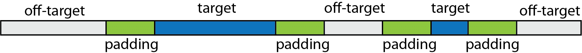 Figure 2. Flanked on-target sequencing analysis. During data analysis across diverse samples, a commonly used method to determine how many sequencing reads are on-target versus off-target is to pad your target region before calculating the flanked on-target bases.