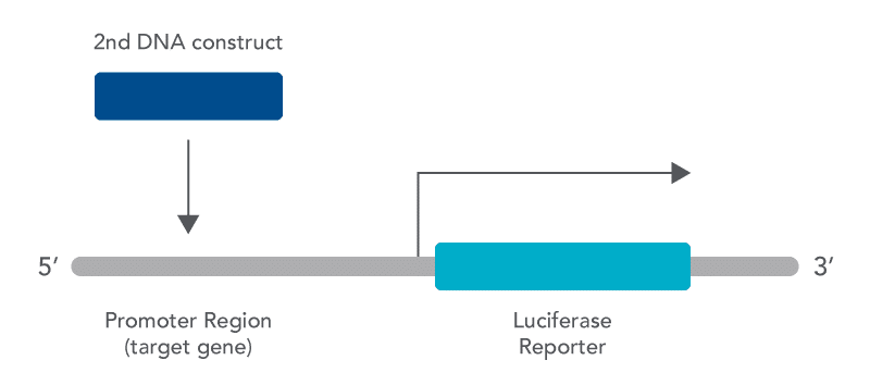 The luciferase assay is a useful tool that can be used to look at gene expression in the laboratory.  One beneficial use is to look at whether activation or repression of a gene is taking place by a protein. This can be done using the luciferase assay because it makes an association between a protein being present and the resulting amount of gene product made [4]. Using the assay for this purpose requires making a construct that includes the promoter region of your gene of interest (the target gene) and fusing it with the coding sequence for luciferase. In addition, a second DNA construct is also needed that codes for the protein thought to be involved in regulating transcription of your target gene [4]